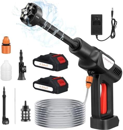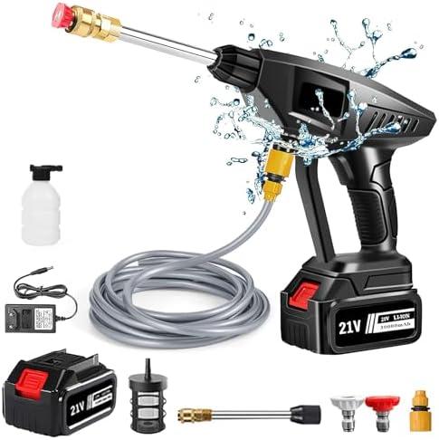 - 2 Nettoyeur Haute Pression sans Fil, Max 36 Bar/522 PSI Machine à Laver Haute Portable avec 2 Batteries 10000mA, 6 en 1 Multi-Pulvérisation, Tuyau 5 M, Pulvérisateur de Mousse pour Voiture Jardin