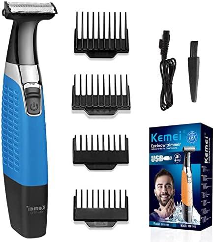 KEMEI Rasoir électrique, tondeuse à barbe pour homme, imperméable, sans fil, rechargeable par USB, épilateur pour sourcils, barbe et poils du corps pour homme et femme, bleu