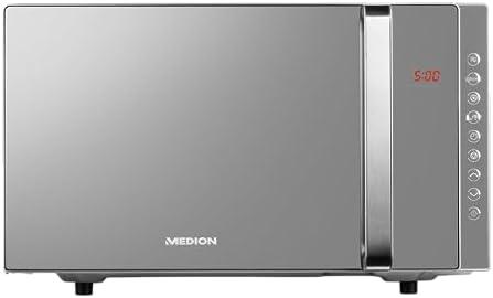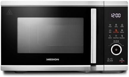 - 4 MEDION Micro-onde 3en1 avec gril et air chaud combiné (23L, 800W, 1200 W gril/air chaud, 10 programmes automatiques, 5 niveaux de puissance, mode décongeler, design miroir, MD17495) argent
