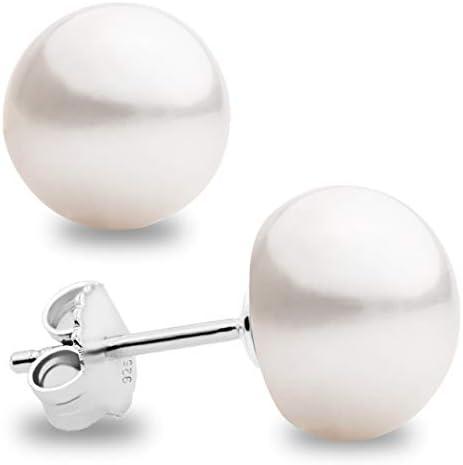 - 4 Secret & You – Boucles d’oreilles en perle pour femme et fille, Perles d’eau douce cultivées en forme de bouton – Argent sterling 925 – Disponible en 10 tailles de 4 mm à 13 mm