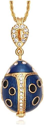 Parlons maintenant d’un bijou unique, qui va faire tourner les têtes à coup sûr : le Pendentif Oeuf Style Fabergé Coccinelle Couronnée Verte et Noire ouvrant sur Fleur avec Cristaux et chaîne. Vraiment, il fallait y penser ! Avec sa coccinelle couronnée, ce pendentif est le roi (ou la reine) de l’originalité ! Vous allez éblouir tout le monde avec cet œuf aux subtils détails dorés et sa chaîne assortie. Alors, prête à porter fièrement cette petite perle d’originalité autour du cou ?