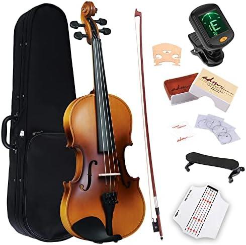 ADM Violin 1/4 Beginner Violin Child 4-6 Years with Fingerboard Sticker, Shoulder Rest and Tuner