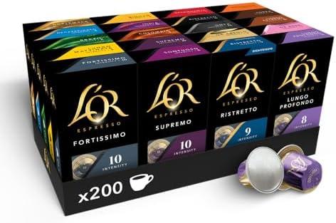 Enfin, si vous aimez les surprises et la diversité, vous serez conquis par L’OR Espresso ASSORTIMENT 20 variétés de capsules. Avec ses 1045g de plaisir gustatif, vous aurez l’embarras du choix parmi ces 20 déclinaisons de capsules compatibles Nespresso®. C’est un véritable éventail de saveurs qui s’offre à vous, allant des classiques aux plus exotiques, pour vous lancer dans une odyssée des arômes tourbillonnante ! Frissons garantis à chaque tasse.