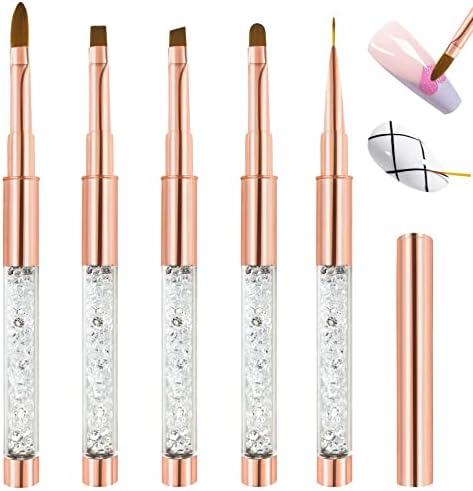 Oweth 5 Pièces Pinceau Nail Art Ongles,Pinceau Ongle Gel, Pinceau Acrylique Ongle DIY Nail Art Design Outils, Pinceau Gel UV Construction Convient Aux Débutants Et Aux Professionnels