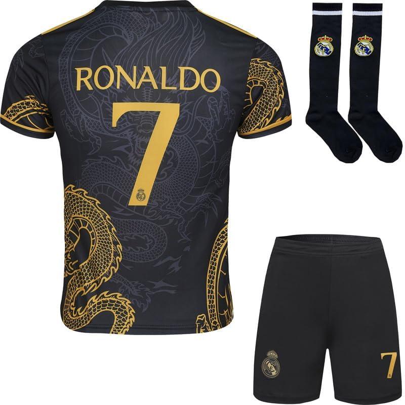 FRKN Trikot R. Madrid Maillot de Football #7 Dragon pour Enfants Blanc Foncé, Design Spécial, Coffret Cadeau, Édition Limitée, Livré avec Un Short Et des Chaussettes