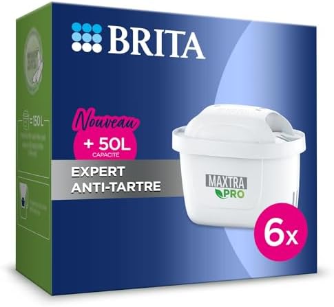 - 4 BRITA Pack de 6 Cartouches filtrantes MAXTRA Pro Expert Anti-tartre – Formule Anti-tartre 50% Plus puissante vs All-in-1 – réduit également Le Chlore, Les Particules Fines ≥ 30 µm et Certains métaux