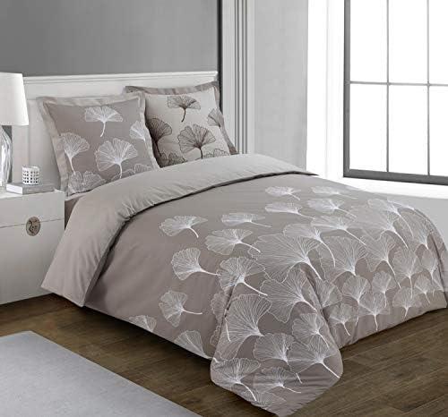- 1 Vision – Parure Housse de Couette Ginko Beige – Housse de Couette 240 x 220 cm avec 2 taies Assorties 65x65cm – 100% Coton