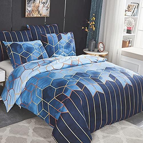Dencalleus Sets Housse de Couette 220×240 cm avec 2 x Taies d’oreiller 65×65 cm, Géométrique Imprimé Boho Microfibre Literie Parure de Lit Linge de Lit avec Fermeture Éclair pour 2 Personnes, Bleu