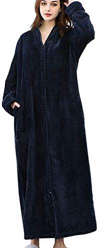 - 1 ZFSOCK Peignoir Femme Polaire à Capuche Hiver Robe de Chambre Fermeture à glissière Peignoir de Bain Longue Douce Microfibre Flanelle Robe de Nuit