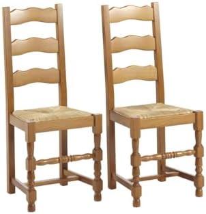 - 2 Vente-unique – Lot de 2 chaises Seguin – Hêtre Massif & Assise en Paille de seigle – Salle à Manger