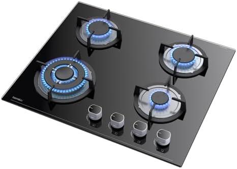 La table de cuisson à gaz Hermitlux offre une expérience de cuisson exceptionnelle grâce à ses caractéristiques avancées et à sa conception élégante et entièrement encastrée. Parmi les avantages de cette table de cuisson, citons ses 4 zones de cuisson de 7800 W équipées de brûleurs étanches haute puissance (3300 W + 1750 W + 1750 W + 1000 W), sa compatibilité avec le gaz naturel et le propane, et son thermocouple de protection qui coupe le gaz en cas d’extinction de la flamme pour éviter les fuites. La surface en verre trempé est également facile à nettoyer, il suffit d’un coup de chiffon humide pour enlever rapidement les taches de graisse et les résidus alimentaires. Voir le produit sur Amazon.