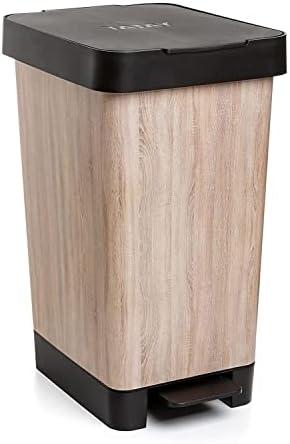 Tatay Poubelle de Cuisine Smart, Capacité 25L, Pédale Rétractable, Polypropylène, Sans BPA, Sac Poubelle 30L. Bois. Dimension 26 x 36 x 47cm