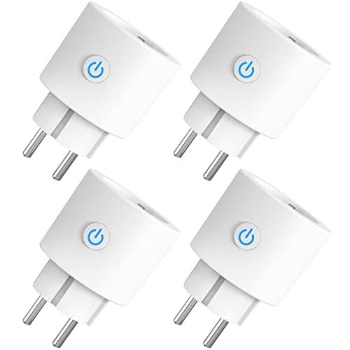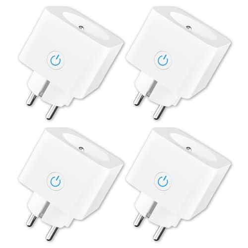 ANTELA Prise Connectée WiFi, Prise Intelligente Compatible avec Alexa, Google Home, Mesure de Consommation Électrique, APP Contrôle, Contrôle Vocal, Fonction de Temps, 16A, 4PCs