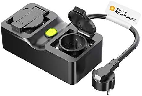 Meross Multiprise Connectée (Type E), 10A Prise Extérieure Étanche IP44, Multiprise Intelligente WiFi Compatible avec Apple HomeKit, Alexa et Google Home, Commande Vocale et Contrôle à Distance