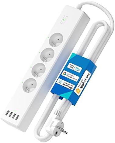 - 4 Multiprise Connectée (Type E), 16A Prise WiFi Compatible avec Apple HomeKit, Alexa et Google Home (4 Prises AC et 4 Ports USB), Multiprise Intelligente avec Commande Vocale et Contrôle à Distance