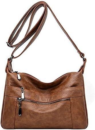 Sac à Bandoulière en Cuir pour Femmes Multi – Poches Sac à Main en Cuir Souple pour Femmes Léger, Bandoulière Réglable