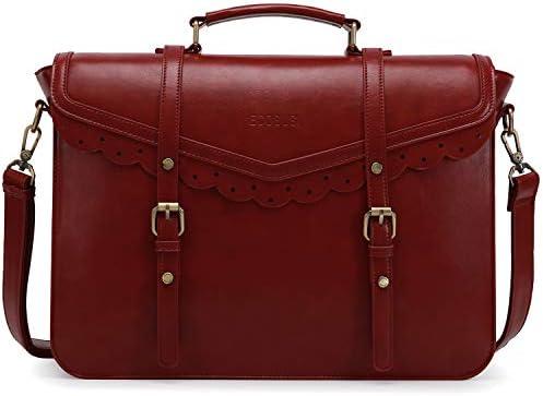 - 1 ECOSUSI Women’s Vintage School Bag Document Bag for 15.6 Inch Laptop Shoulder Bag PU Leather Laptop Bag for Ladies, Teachers, Students, Red, Retro