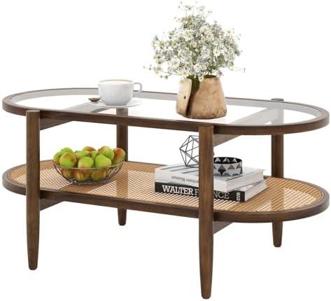 La table basse COSTWAY offre un mélange parfait de style et de fonctionnalité. Ce meuble élégant associe un plateau en verre trempé résistant à la chaleur pour un nettoyage facile et une étagère en rotin PE résistant à la décoloration, la rendant adaptée à une utilisation quotidienne à long terme. Son cadre en bois massif offre une stabilité optimale avec une capacité de charge de 50 kg et est dotée de patins antidérapants pour protéger votre sol. Utilisez cette table polyvalente dans un salon, une salle de réception ou un bureau pour savourer une tasse de café ou recevoir des invités. Voir le produit sur Amazon.