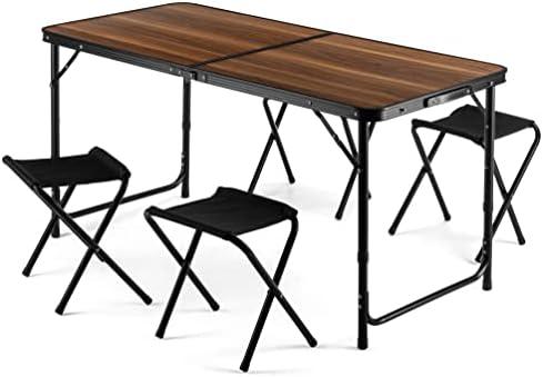 Outtec Table de Camping avec 4 chaises Pliantes - 120 x 60 cm – Fonction Valise – pour la Terrasse, Le Camping, Le Jardin, Pique-Nique – réglable en Hauteur (Bois)