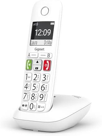 Gigaset E290 – téléphone sans fil pour seniors avec de larges touches, touches d’accès direct pour les numéros importants, fonction d’amplification pour un son extra fort, blanc