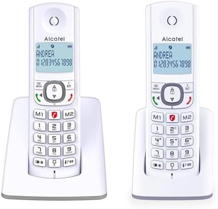 ALCATEL F530 Duo – Téléphone Fixe Sans Fil DECT – Grand Écran Rétroéclairé – Mains Libres – Fonction Blocage Des Appels – 2 Touches De Mémoires Directes – 2 Combinés – Blanc/Gris