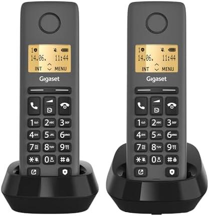 - 1 Gigaset PURE 120 Duo - 2 cordless phones with ECO DECT – backlit display – hearing aid compatible – call protection, anthracite black