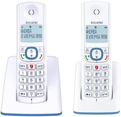 ALCATEL F530 Duo – DECT Cordless Fixed Phone – Large Backlit Screen – Hands Free - Call Blocking Function – 2 Direct Memory Keys – 2 Handsets – White/Blue