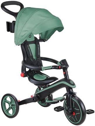 Globber – 4 in 1 Explorer Tricycle – Foldable and evolving bike tricycle for toddlers from 10 months to 5 years – Olive