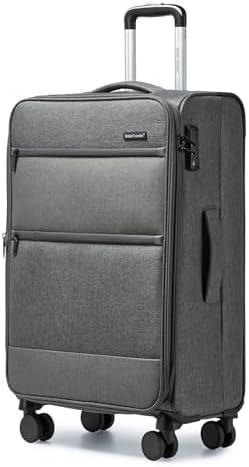 British Traveller Valise Moyenne Taille Souple Valises Soute 75 Liters, Valise Souple Extensible Valise de Voyage à 4 roulettes et Serrure TSA, 70x43x25 cm (Gris)