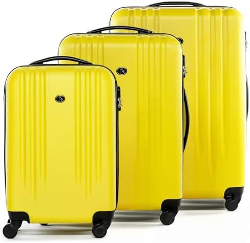 - 3 FERGÉ Set de 3 valises rigides à 4 roulettes Marseille | Lot de 3 – Trolley Voyage |Ensemble de Bagages Jaune