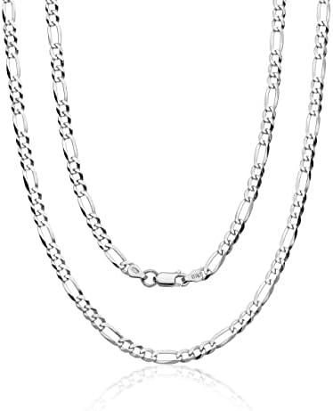 - 1 AKA Gioielli® – Chaîne Maille Figaro Plate 4.4 mm Argent Fin Sterling 925 Rhodié – Collier Homme Femme Longueur: 45 50 55 60 65 70 75 cm