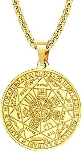 - 2 JeweBella Collier Talisman de Médaille Sceau des 7 Archanges pour Homme Femme Talisman Pentagramme Acier Inoxydable Pendentif Amulette Protection Magique Chaine Homme Bijoux Porte Bonheur