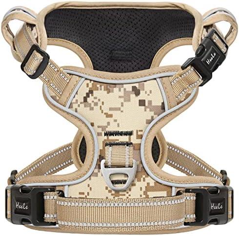 HEELE Harnais Chien, Anti Traction Réfléchissant Camouflage Harnais pour Grand Chien avec Poignée Rembourrée, 1 Boucle sur la Sangle Droite de Cou Rendent Facile à Mettre et à Enlever, Camo-Marron, L