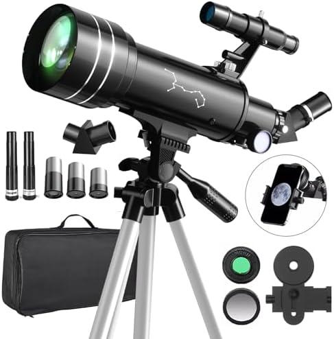 Astronomical Telescope 400mm/70mm Beginner Telescopes for Adults Children, 200X HD Portable Astronomical Telescope with 3 Eyepieces, Phone Holder, Moon Filter, Remote Control, Storage Bag