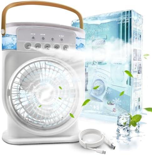 Climatiseur Portable Silencieux 4 en 1, Ventilateur Brumisateur Eau, Climatiseur Mobile sans Évacuation, Mini Climatiseur, Climatisation Rechargeable Clim Humidificateur Type-C avec Minuterie (Blanc)