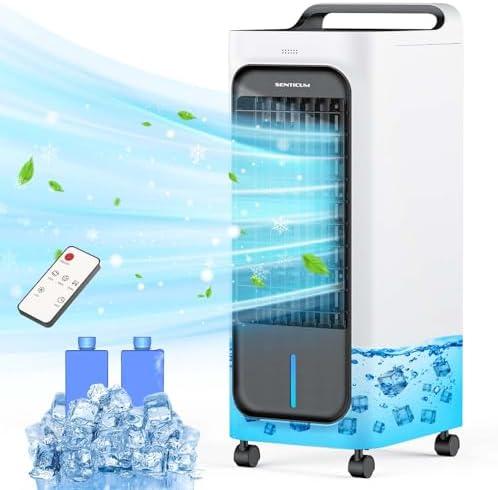 - 2 SENTICUM Climatiseur Mobile | 3 en 1 Refroidisseur d’Air par Evaporation |Ventilateur | Humidificateur | avec 3 Vitesses | Réservoir 5,5L | Minuterie | Télécommande | Silencieux | Portable