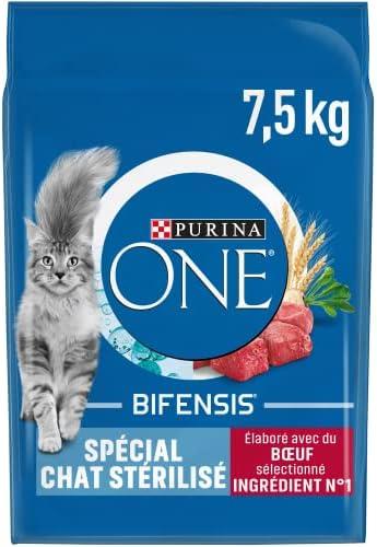 Ensuite, pour les félins adultes, découvrez PURINA ONE Bifensis Chat Stérilisé. Ce sac de 7,5kg de croquettes au bœuf est spécialement conçu pour les chats adultes ayant subi une stérilisation. Malheureusement, nos félins adorés peuvent prendre du poids après cette opération, et il est essentiel de leur proposer un aliment adapté à leurs besoins. Ne jouez pas avec la santé de votre chat stérilisé : optez pour PURINA ONE Bifensis et veillez à lui offrir une nourriture de qualité.