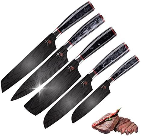 MasterPRO Tetsu | Couteaux de Cuisine Set Complet 5 Japonais Parfaits pour couper tous types d’aliments Professionnelle Renforcés, Équilibrés et avec Revêtement en Titane BGEU-5610