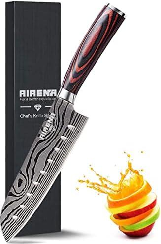 Couteau Japonais Santoku, 7″Couteaux de Cuisine Professionnels – Acier Inoxydable Allemand Carbone - Lame de Extra Tranchante – Manche Ergonomique – pour la Cuisine à Domicile et Le Restaurant