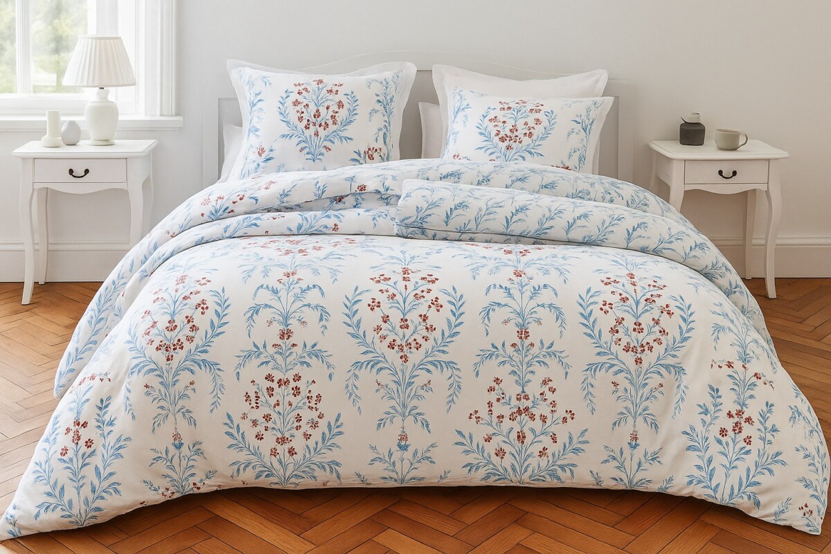 La collection Cascades Florales est le parfait équilibre entre nature, élégance et apaisement. Ses fleurs stylisées semblent s’écouler en cascade sur le tissu, créant un effet à la fois vivant et délicat. Idéale pour apporter une touche de fraîcheur romantique à votre décoration de chambre, cette parure s’intègre aussi bien dans un univers classique que contemporain.