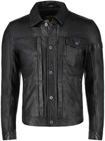 SHOP OF JACKETS LIMITED Veste de camionneur en cuir véritable souple pour homme