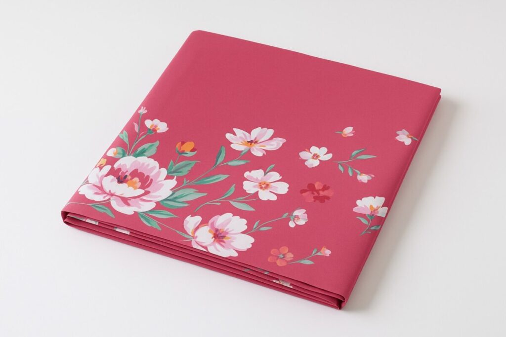- Motif : Fleurs éclatantes et feuillages stylisés