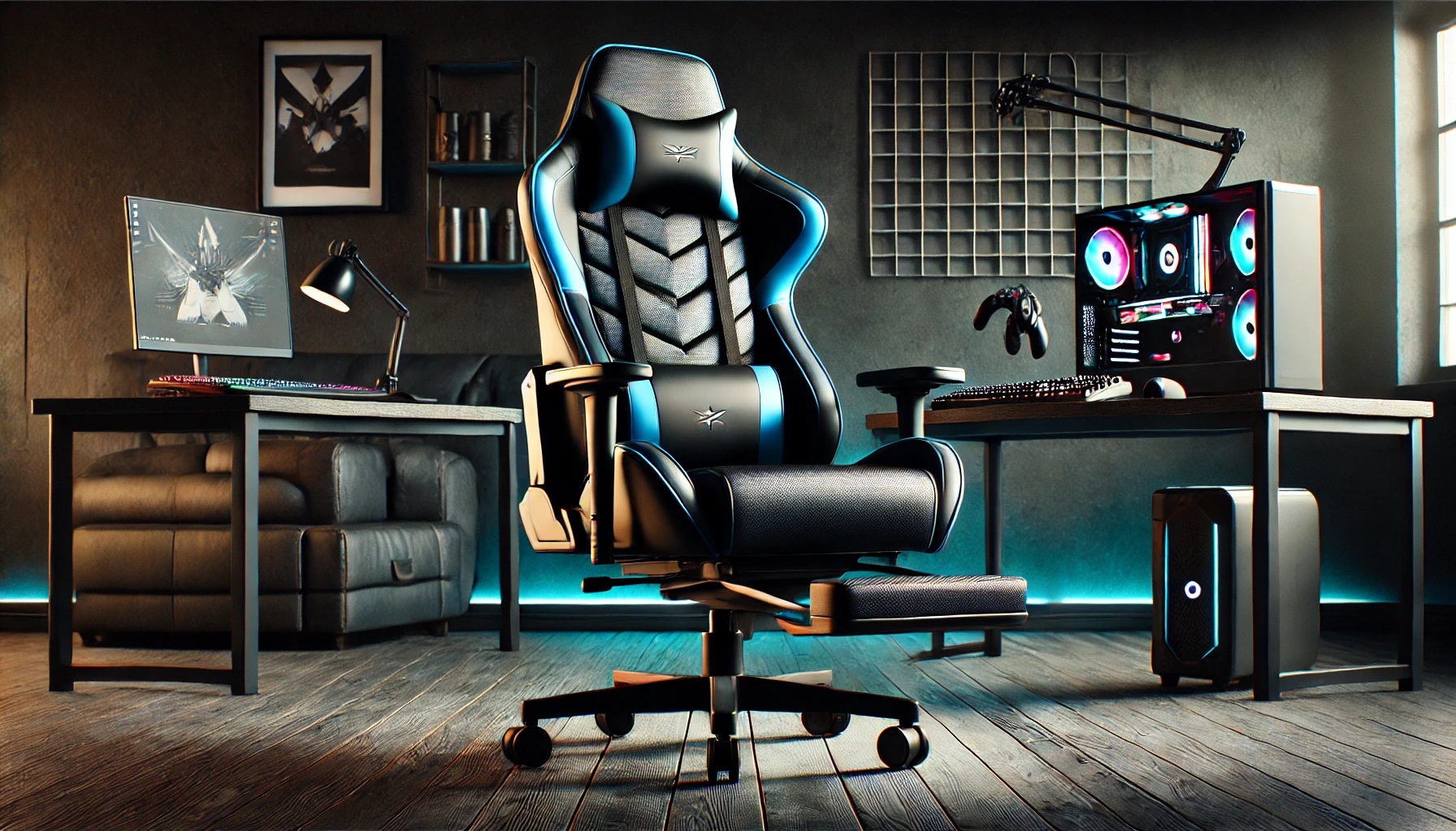 ✔️ Design moderne – Look gamer avec une finition en similicuir noir et bleu pour un style affirmé.