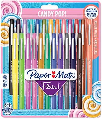 - 1 PAPER MATE Flair Candy POP Feutres de Coloriage | pointe moyenne (0,7 mm) | assortiment de couleurs | Lot de 24