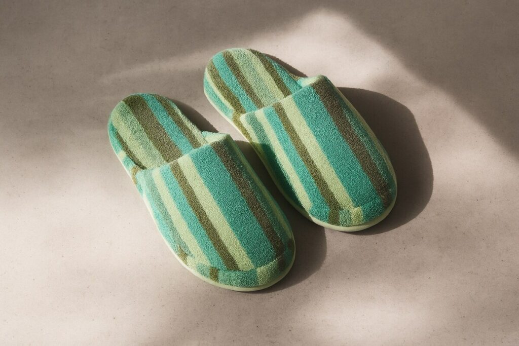 Avec leur design sobre à rayures jacquard et leur coloris kaki rayé très tendance, elles s’accordent parfaitement à vos tenues d’intérieur pour un look soigné même à la maison.