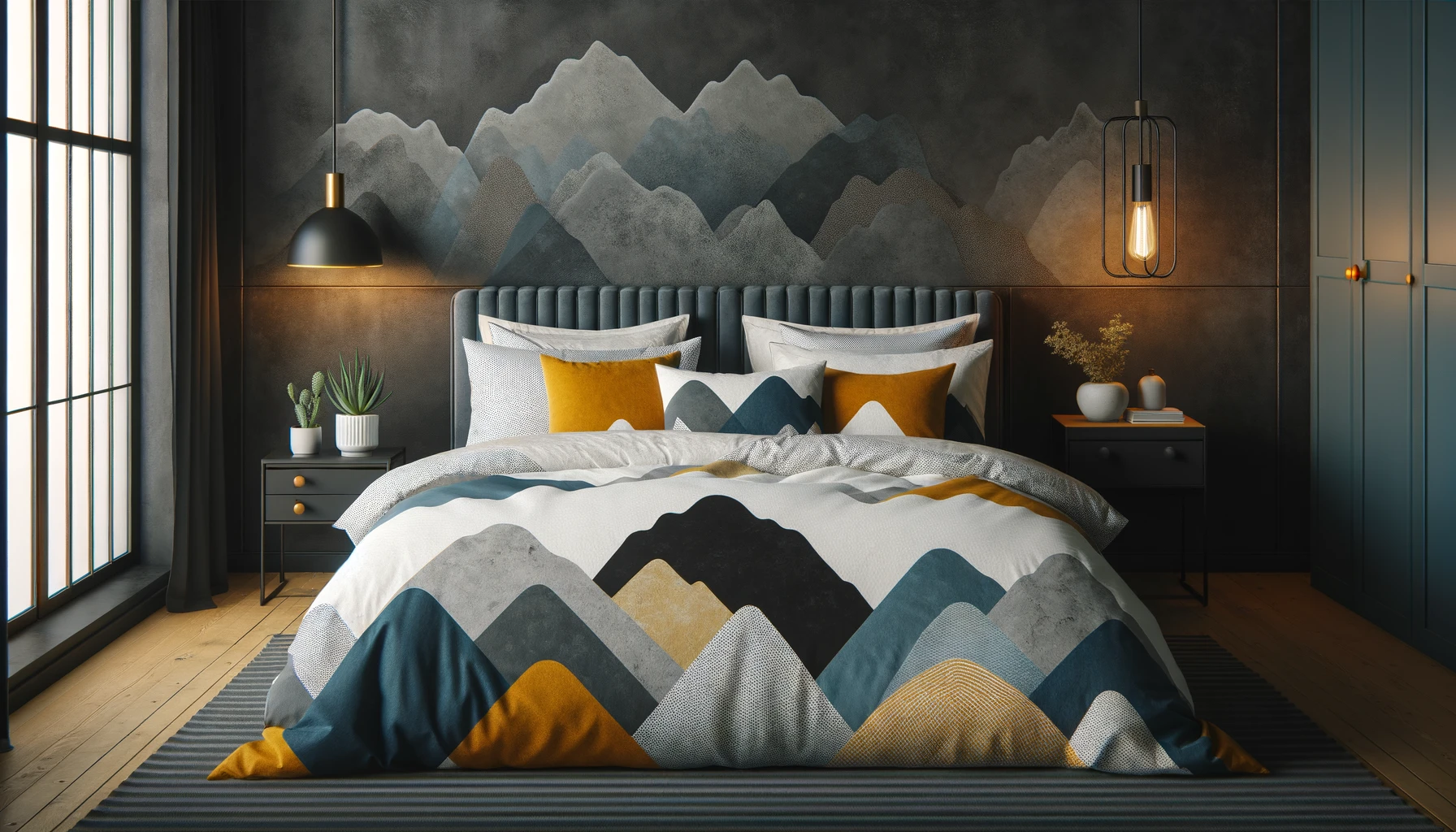 « Près des Nuages » se distingue par son esthétique minimaliste et apaisante. Les motifs triangulaires abstraits créent une ambiance douce et invitante, idéale pour se détendre et échapper au stress du quotidien. Sa palette de couleurs neutres s’intègre parfaitement à tout décor de chambre, ajoutant une touche de modernité et de fraîcheur.