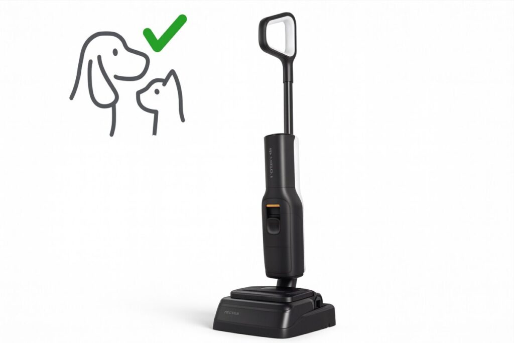 - Compatible avec : carrelage, parquet, béton ciré, sols avec poils d’animaux