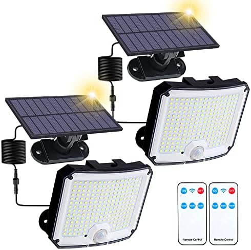 - 2 ZEEQII Lumiere Solaire Exterieur Detecteur de Mouvement 208LED, IP65 Étanche Lampe Solaire Exterieur avec Télécommande, 3 Modes Projecteur Exterieur Solaire pour Jardin avec Câble de 5M