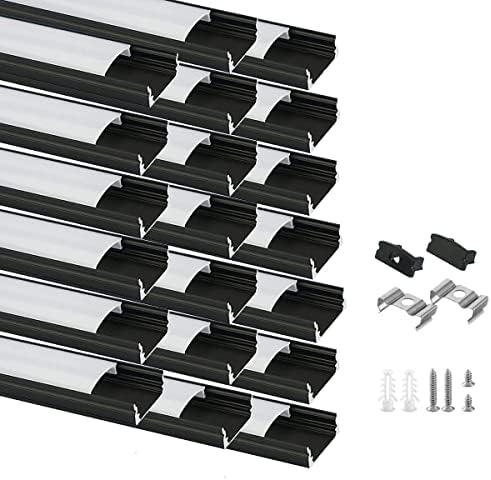Profilé en aluminium LED – 20 x 1 m – En forme de U – Noir – Diffuseur de lumière LED avec couvercle laiteux Profil en aluminium pour bandes LED (20 x 1 m en forme de U)