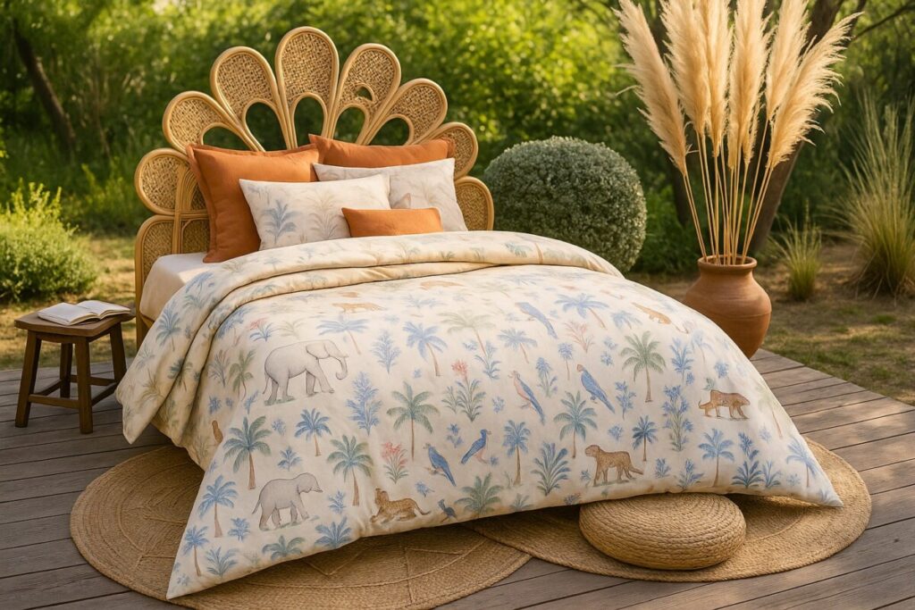 Transformez votre chambre en un palais d’inspiration orientale avec la somptueuse parure « Au Royaume de Siam » signée Françoise Saget. Cette collection textile raffinée, aux motifs élégants et exotiques, vous plonge dans une atmosphère zen, chic et dépaysante. Actuellement en promotion exceptionnelle, vous bénéficiez de jusqu’à -60%, de la livraison gratuite dès 45€ d’achat, et du paiement en 3x sans frais dès 60€. Attention : cette collection très prisée s’écoule rapidement !